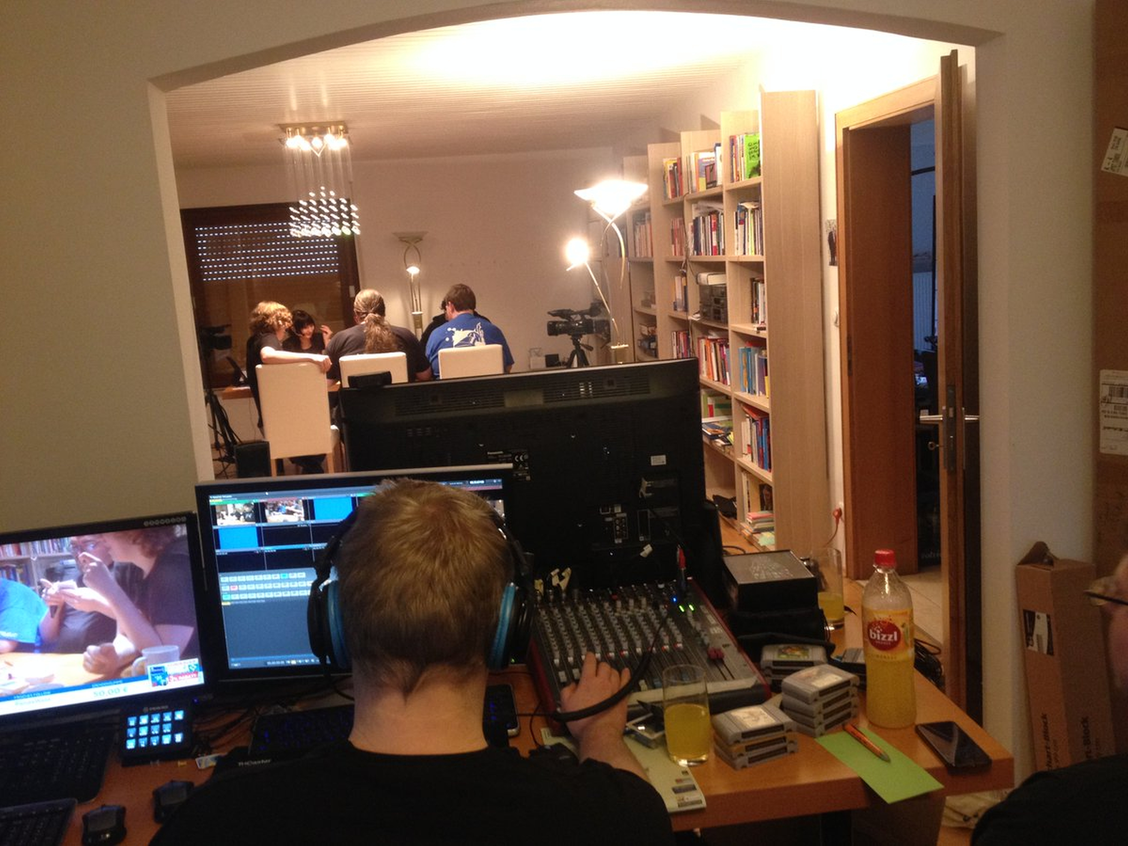 - Einfache Webcams und eine Hauptkamera wurden verwendet, um die Crew und den Raum zu filmen.