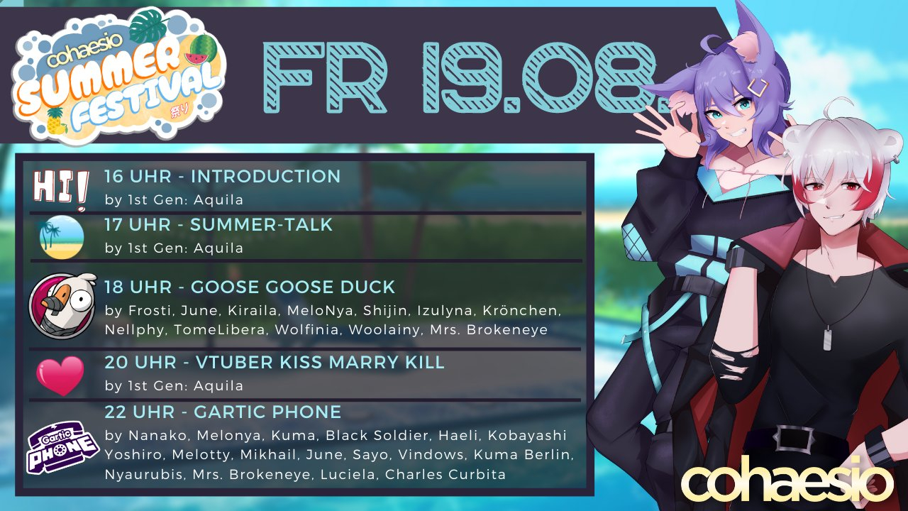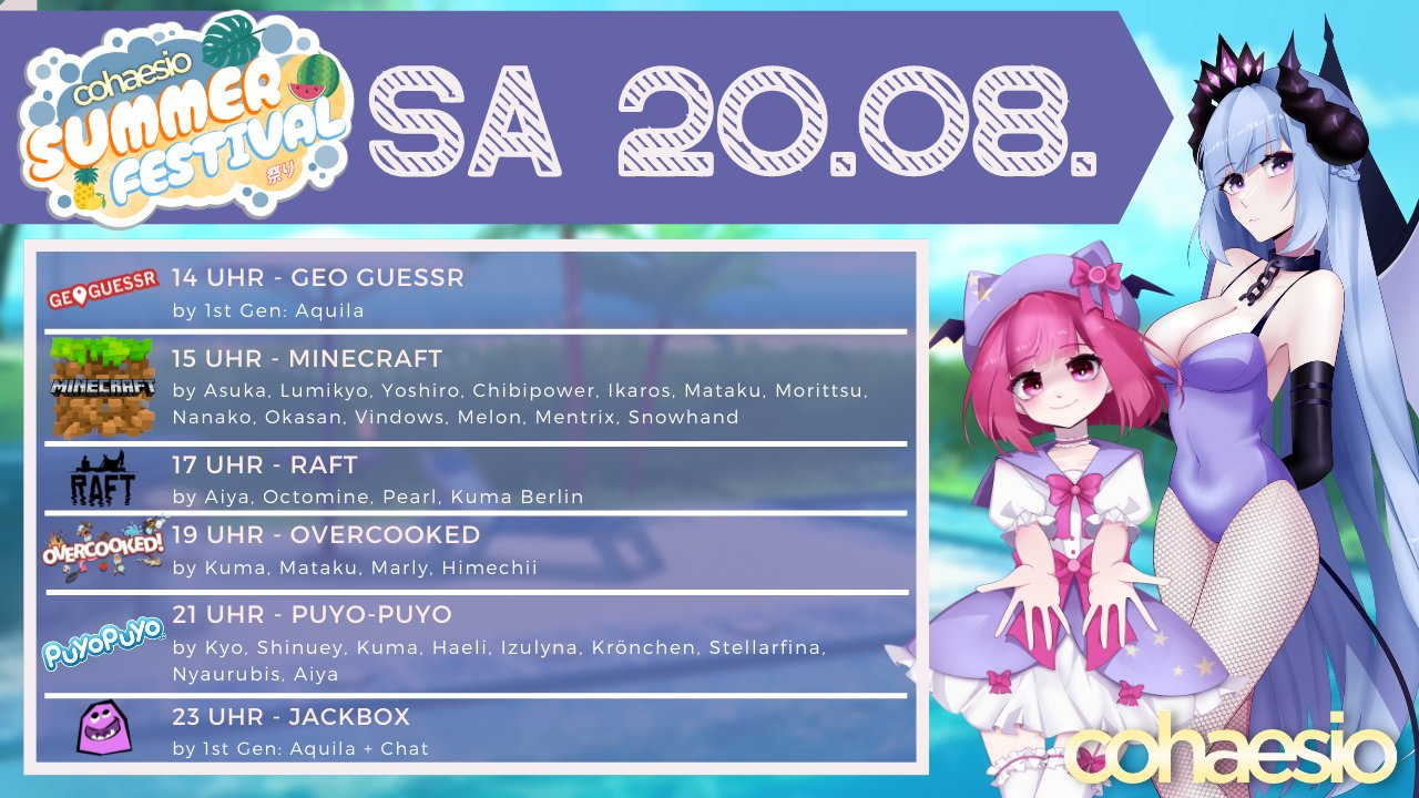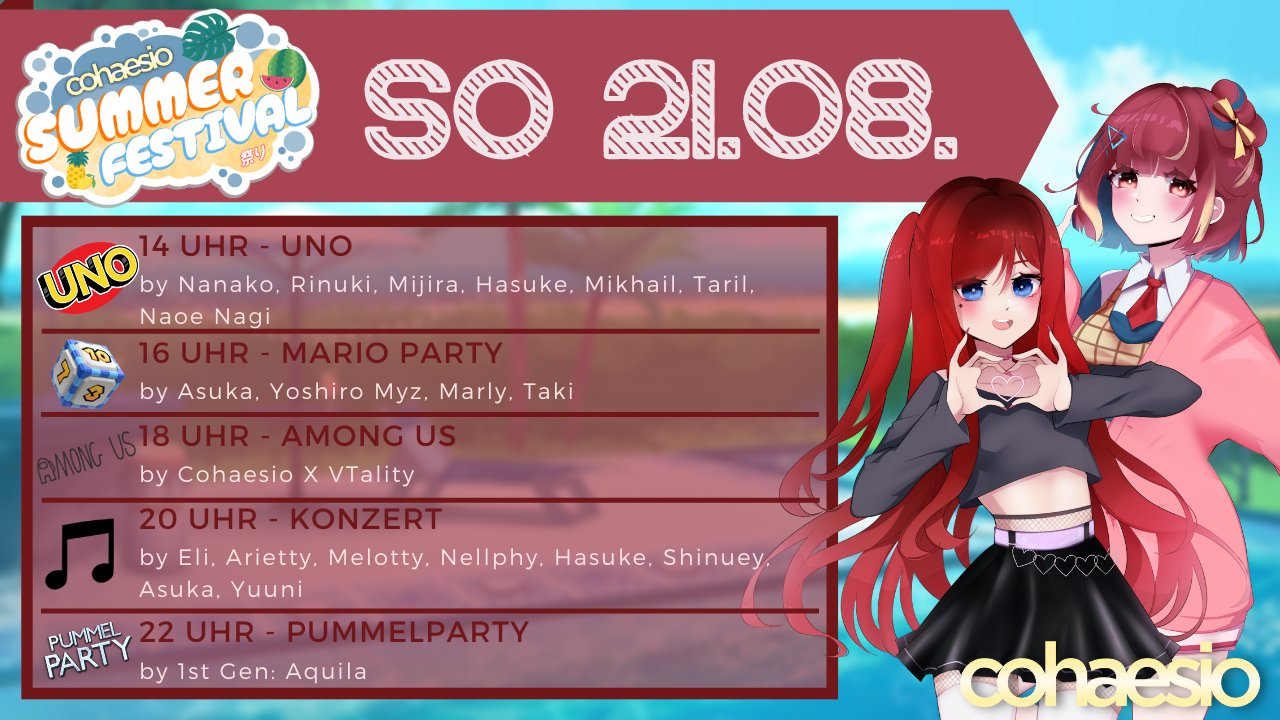 - Cohaesio Summer Festival – Ein großes Sommer-Event mit 39 Gast-VTubern aus der deutschen Szene, verteilt auf verschiedene Blöcke über ein Wochenende.
