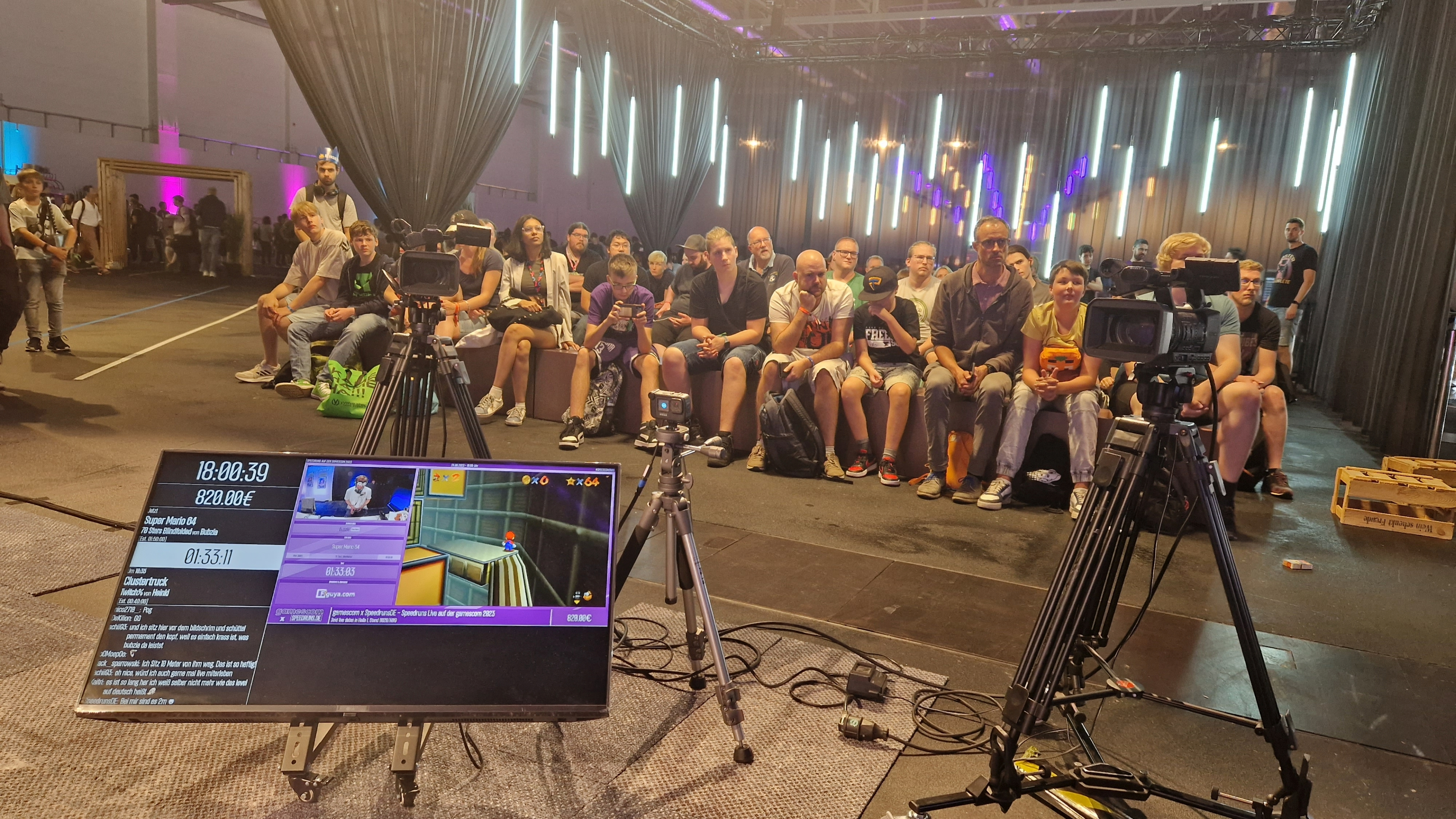 Der wohl emotionalste und eindrucksvollste Moment der Woche war das Super Mario 64 (70 Stars) Race zwischen Benji und Dwhatever. Der Zuschauerbereich war so überfüllt, dass Fans nicht nur die Sitzmöglichkeiten nutzten, sondern auch stehend um die gesamte Bühne versammelt waren – eine Atmosphäre, die selbst auf einer so großen Messe wie der gamescom selten ist.