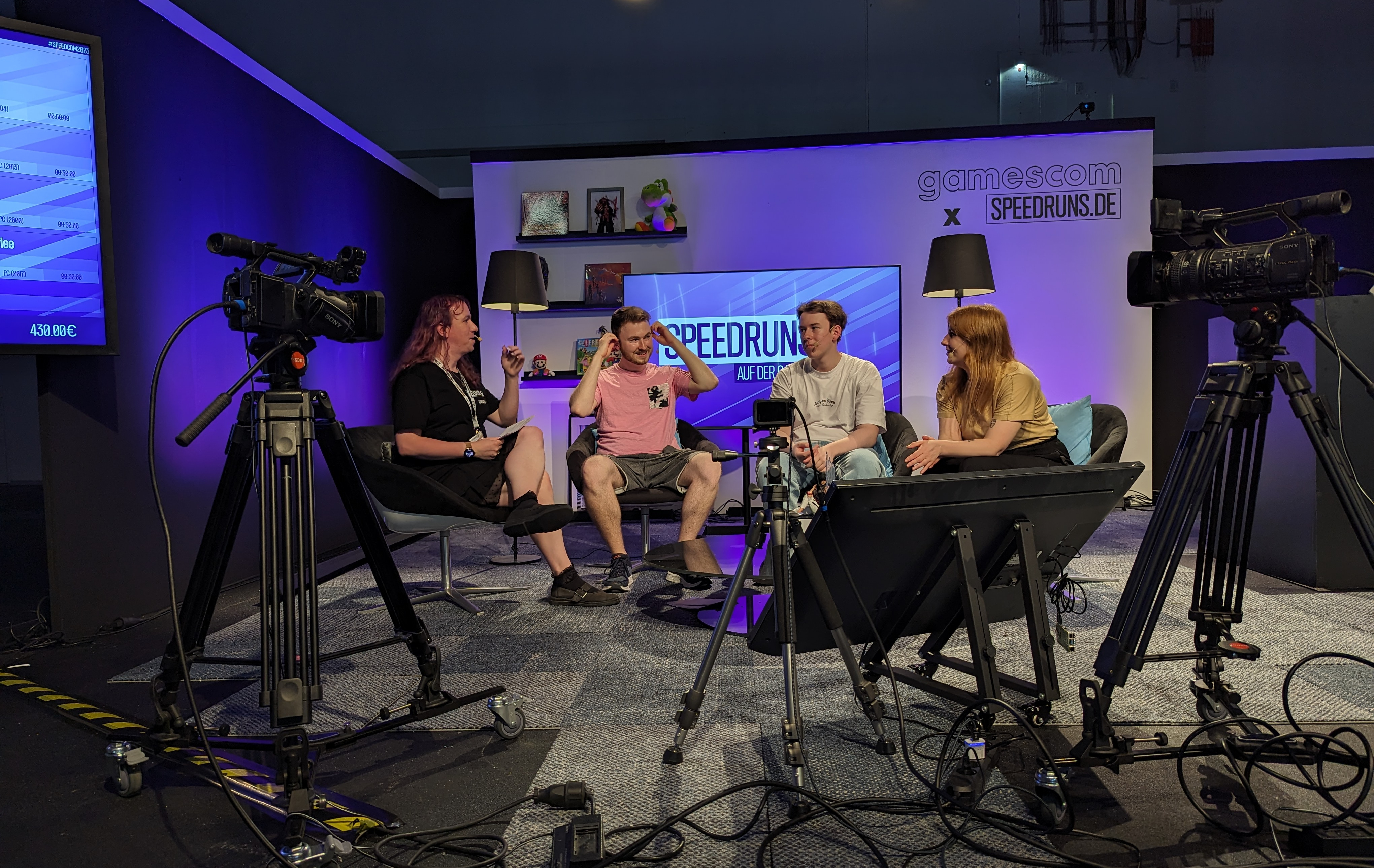 Speedruns auf der gamescom 2025 – mit komplett eigener Bühnenproduktion, TV-Ausstrahlung auf eSportsONE und internationalen Restreams in Englisch, Französisch und Portugiesisch.