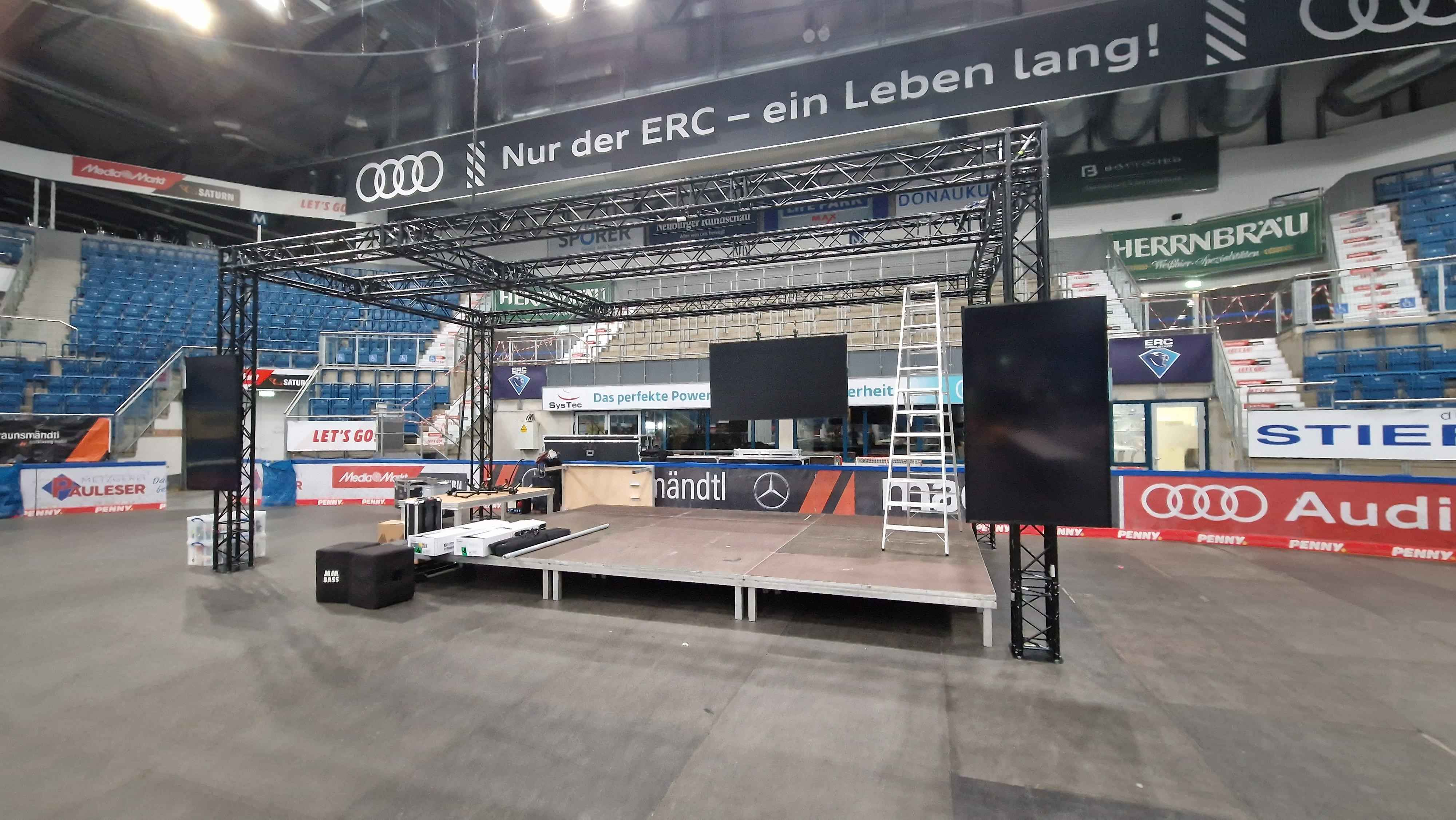 Wir übernahmen die vollständige Produktion der Messebühne – von der Planung über den Aufbau bis hin zur technischen Ausstattung. Dazu gehörten: