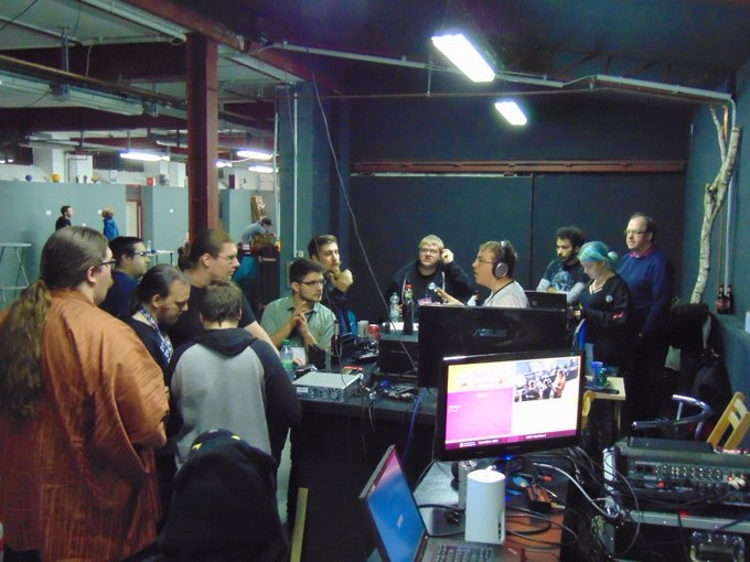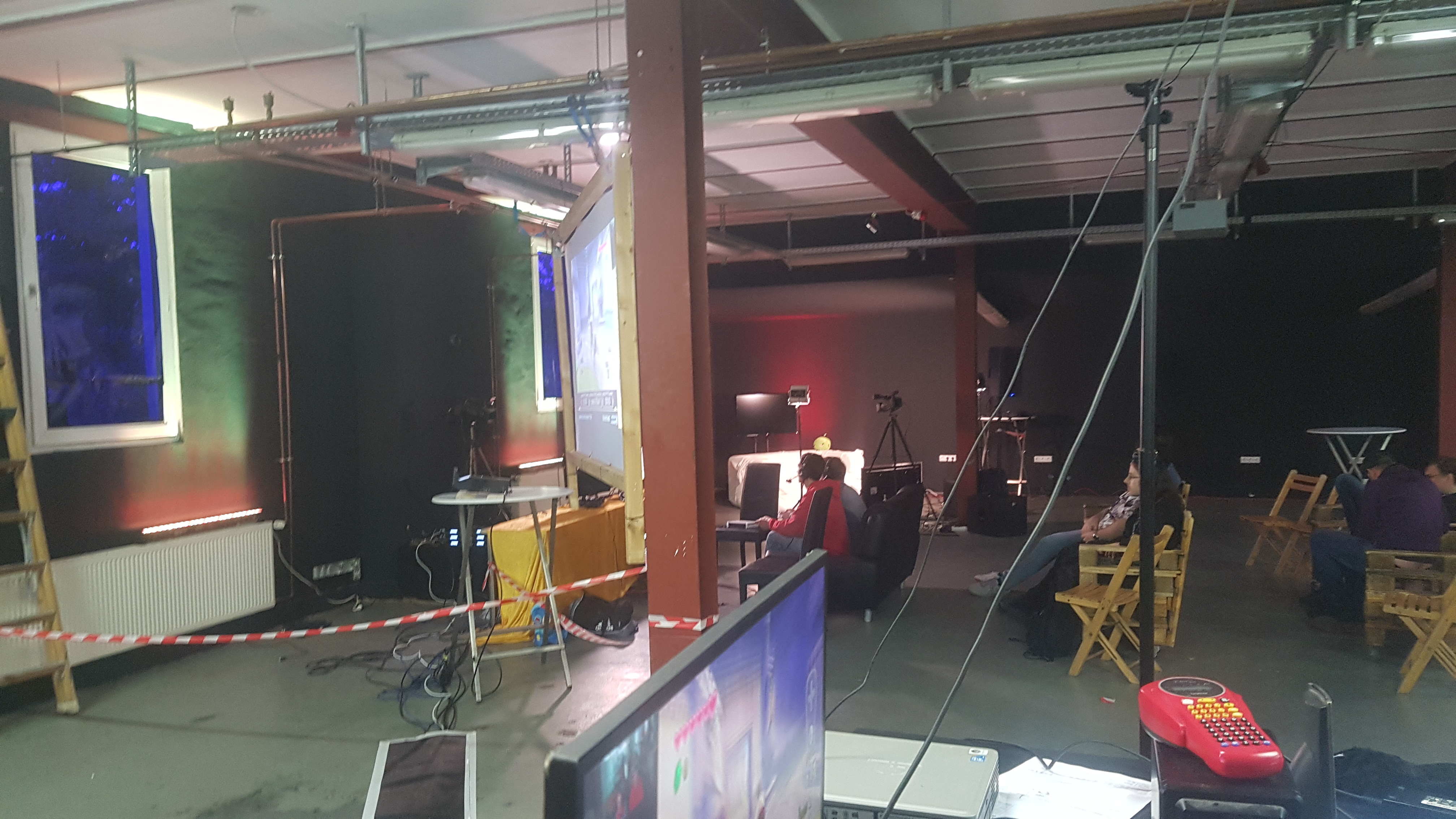 - Die Veranstaltung wurde primär als Livestream konzipiert, dennoch war auch ein kleines Publikum vor Ort – hauptsächlich bestehend aus den Speedrunnern selbst sowie deren Begleitungen.